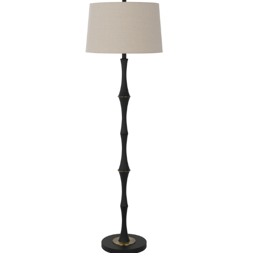 The Salter Collection Floor Lamp offers a creative twist on classic lighting, featuring a durable metal pole meticulously textured to mimic the natural nodes of bamboo. The striking Matte Black finish is accented with warm Antique Brass details, providing a chic, high-contrast look that fits seamlessly into contemporary, transitional, or coastal decor.