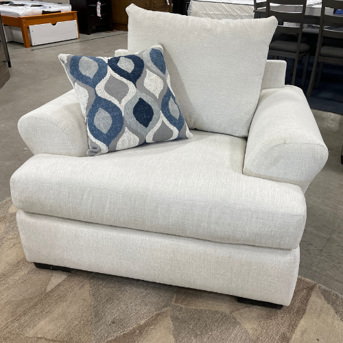 Indulge in spacious comfort with this transitional Chair-and-a-Half and Ottoman set. Designed for those who want more room than a standard armchair provides, the chair-and-a-half features a deep-seated profile and wide, padded rolled arms that invite you to curl up. The light, airy cream linen-weave fabric offers a clean, versatile look that brightens any room while remaining soft to the touch.