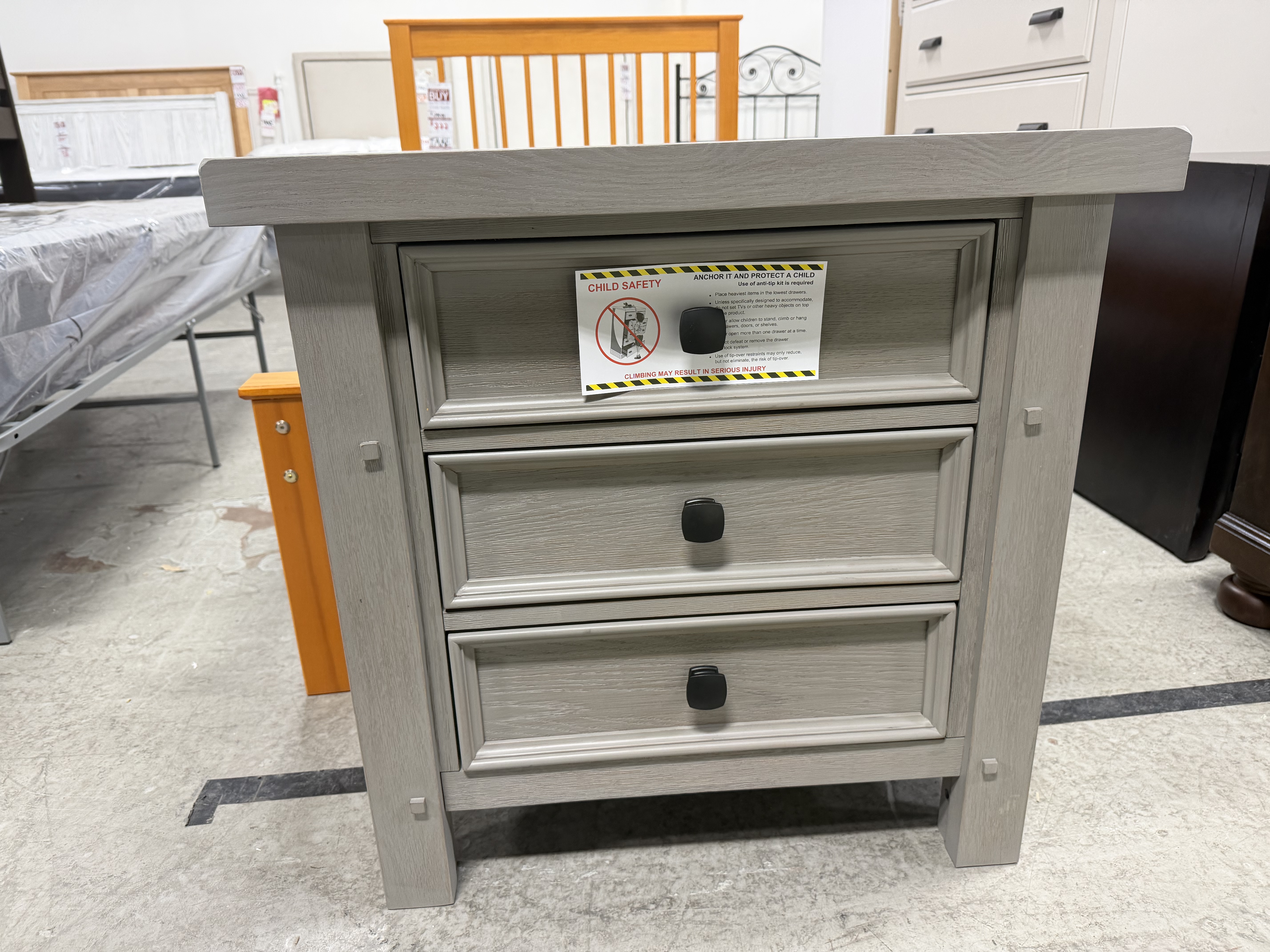 Elevate your bedroom’s aesthetic with this substantial Rustic Modern Nightstand. Built with a focus on durability and style, this piece showcases a beautiful wood grain texture enhanced by a multi-tonal gray finish. The thick, overhang tabletop provides plenty of space for a lamp, books, and electronics, while three spacious drawers keep your personal items organized and out of sight.