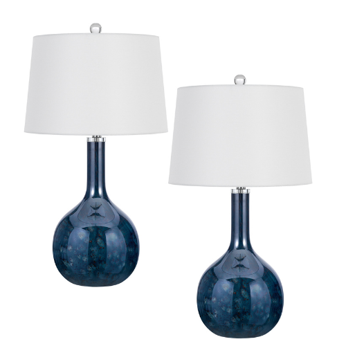 Transform your space with the elegant curves and radiant finish of the Kemi Table Lamp Set. Crafted from durable glass, each lamp features a wide-bottom gourd silhouette treated with a deep Antique Blue Luster painted finish. This high-gloss, multi-tonal blue adds a layer of modern luxury, while the substantial 29-inch height makes them a true focal point for end tables, large nightstands, or console displays.